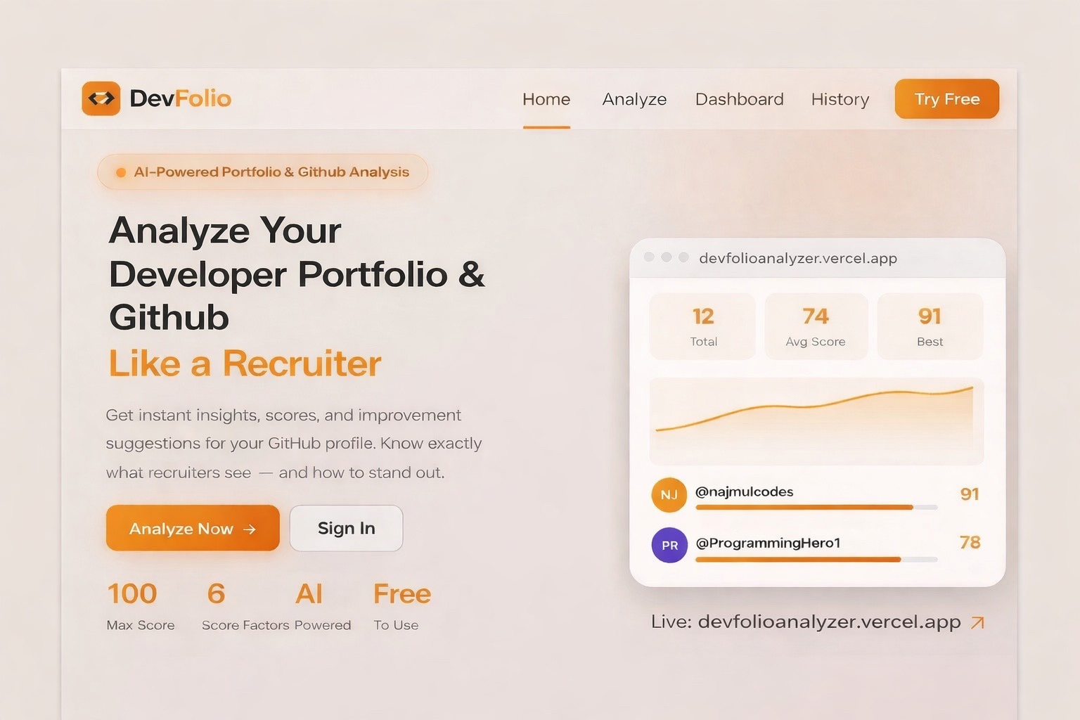 Devfolio Analyzer turns public profile data into a clear score, specific feedback, and practical next steps.